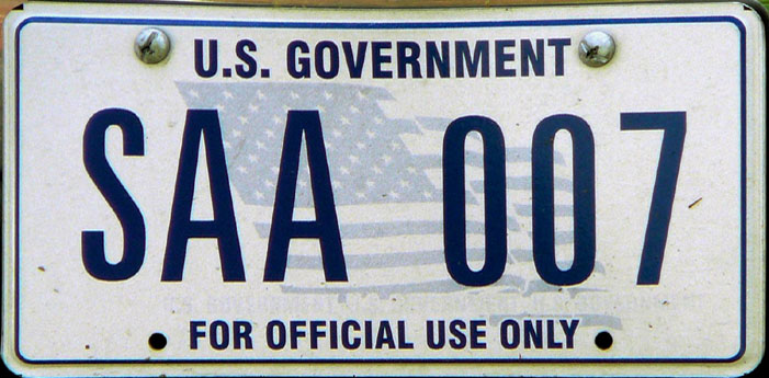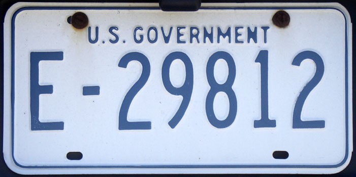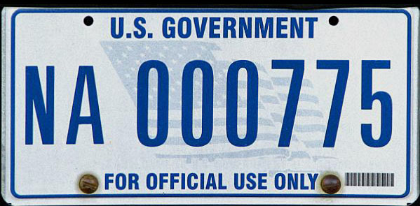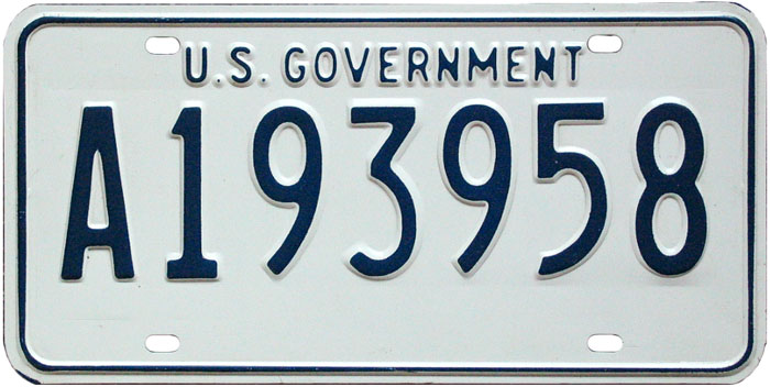 Markers used to identify federally-owned vehicles may be segregated into three general categories: license plates, numbered permits, and unnumbered permits. Permits are not the primary evidence of vehicle registration, but supplement (and are usually attached to) the vehicle's license plate. We've made some assumptions as to whether certain numbered plates are license plates or permits based solely on their appearance, and welcome information and opinions on this subject.