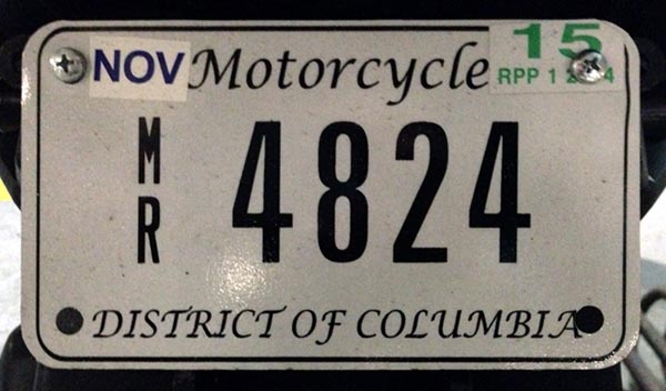 Before 1918. It was for motorcyclists that the only distinctive non-passenger plate type was made prior to 1918, when D.C. plates were undated, considered permanent, and featured a porcelain enamel finish. There are no known examples of the earliest style, which is white on black, and just a few of the white-on-red, fender-shaped later style. Click here to reach the section of our Pre-1918 Plates page dedicated to the early history of D.C. motorcycle plates.